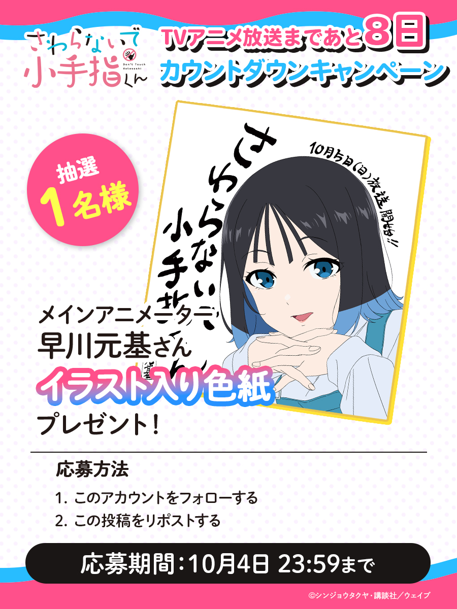 『さわらないで小手指くん』TVアニメ公式X(@kotesashi_anime)をフォロー・該当のポストをリポストしていただいた方の中から抽選で1名様に「メインアニメーター 早川元基さんイラスト入り色紙」をプレゼント!